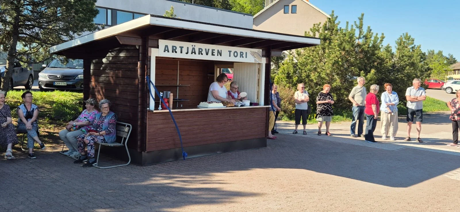 “Tori on kaupungin maalla ja siis meidän kaikkien yhteisellä maalla. Viherpalvelut laittavat sinne kesäkukat kukkimaan ja Artjärven vanhustentuella on vastuullaan torikioski rakennus, joka toiselta nimeltään on Kohtaamiskeskus. Henkilökohtaisesti pidän huolen, että jokaisena kesäisenä perjantaina luukut avautuvat klo 17.00 ja ovat avoinna klo 20.00. Kioskia saa vuokrata ja vuorokausi hinta on 5 € artjärveläisiltä. Muutoin torille saa mennä myymään omia tuotteita. Torilla ei ole lainkaan paikkamaksuja.